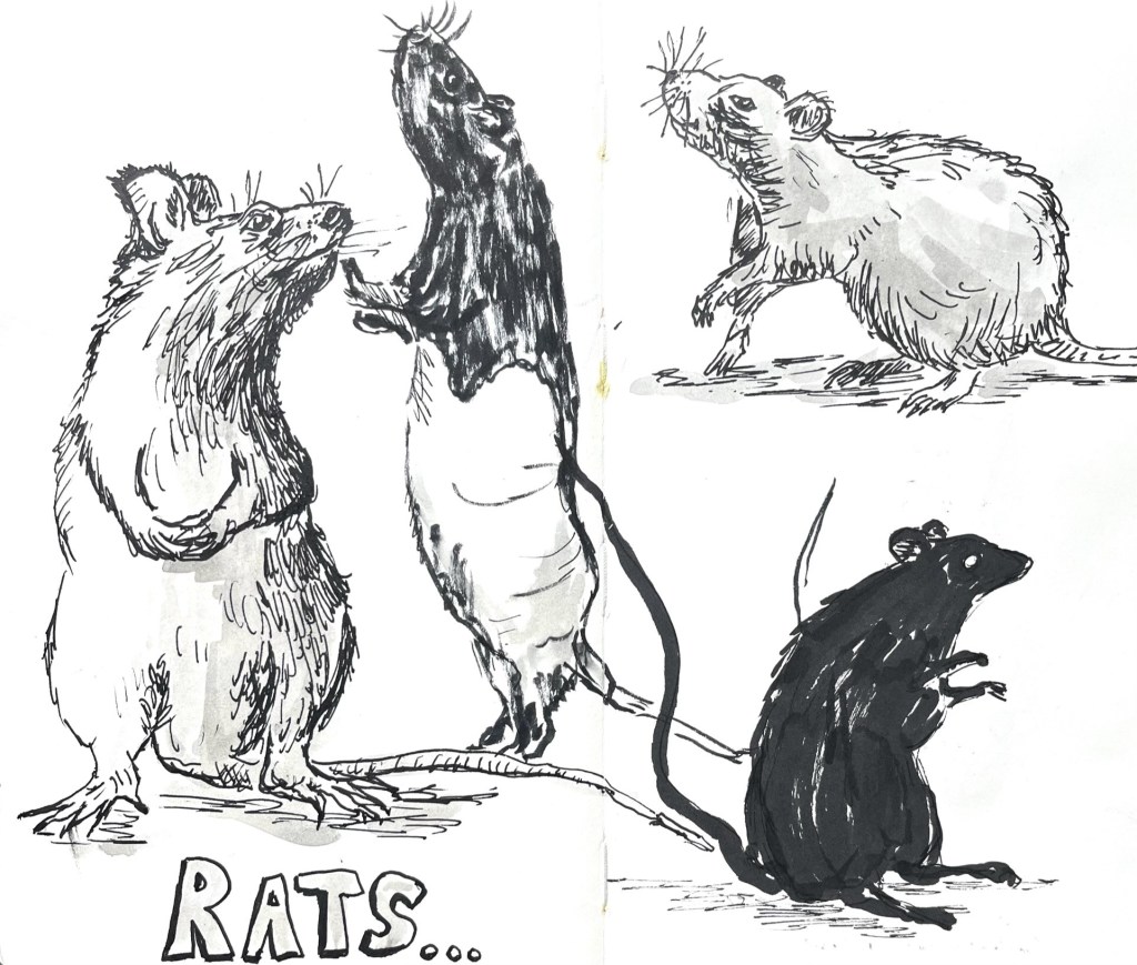 But they are also highly intelligent, and have been used in scientific research which has in turn supported significant medical breakthroughs. I think they are beautiful too. I had pet rats when I was a kid – I remember fondly Ralph, and Ralph II. They were wonderful friends, and I sure cried when they developed tumours and died. Like to many species in the world, sometimes a bit of knowledge helps us understand things better, and allows us to be more nuanced in opinions. So, why not grab a sketchbook* and draw some images of rats, snakes, spiders, or sharks. Appreciation can grow from art, I find.