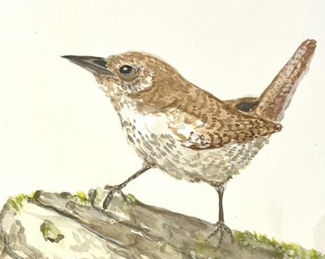 A wren, in watercolour. A bird worthy of watching. This slender book of poetry is about life and loss, and Carolyne shares intimate and authentic moments and emotions about aging parents, love, life and loss. She juxtaposes the ever-present carefree (yet not painless!) birdlife around us with the lives of those we love as their bodies (and perhaps minds) deteriorate.